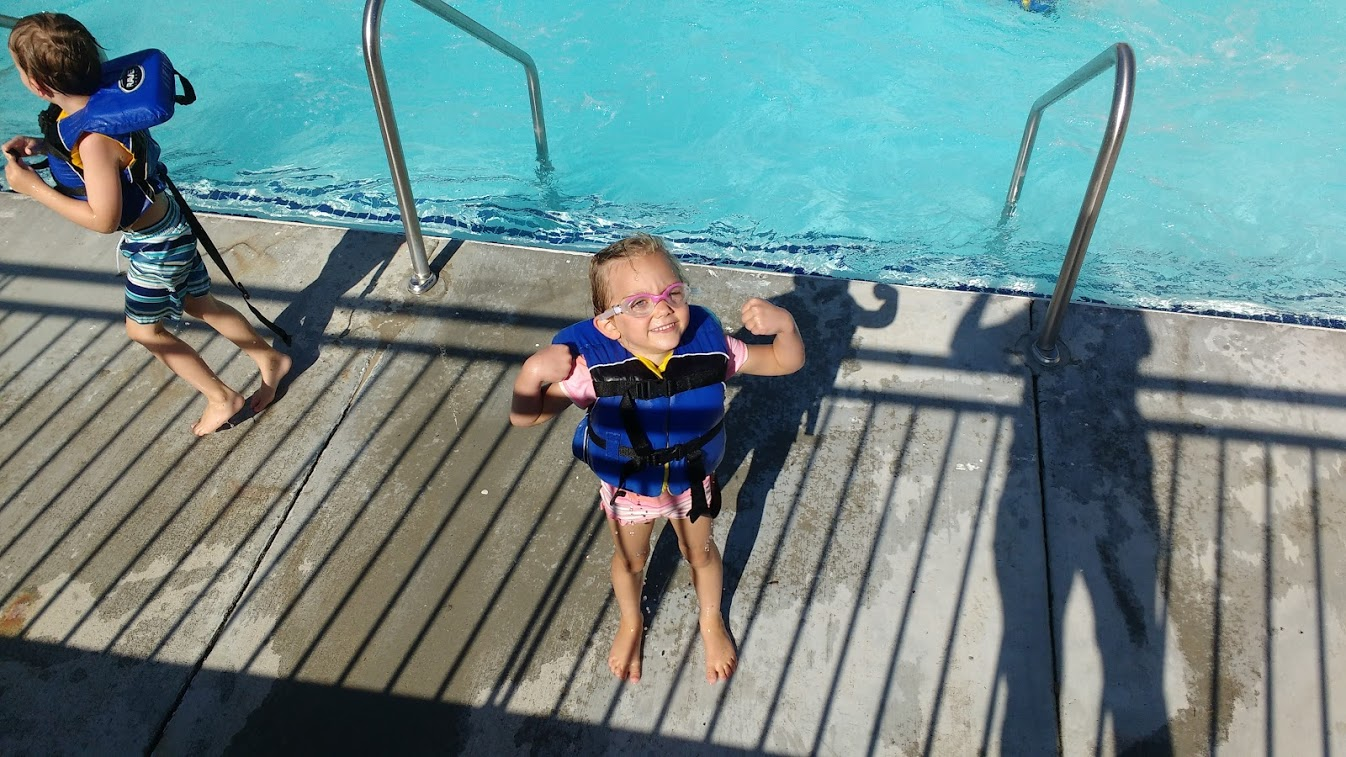 Henry passed swim lessons with flying colors!Amelia isn't afraid of those water slides!